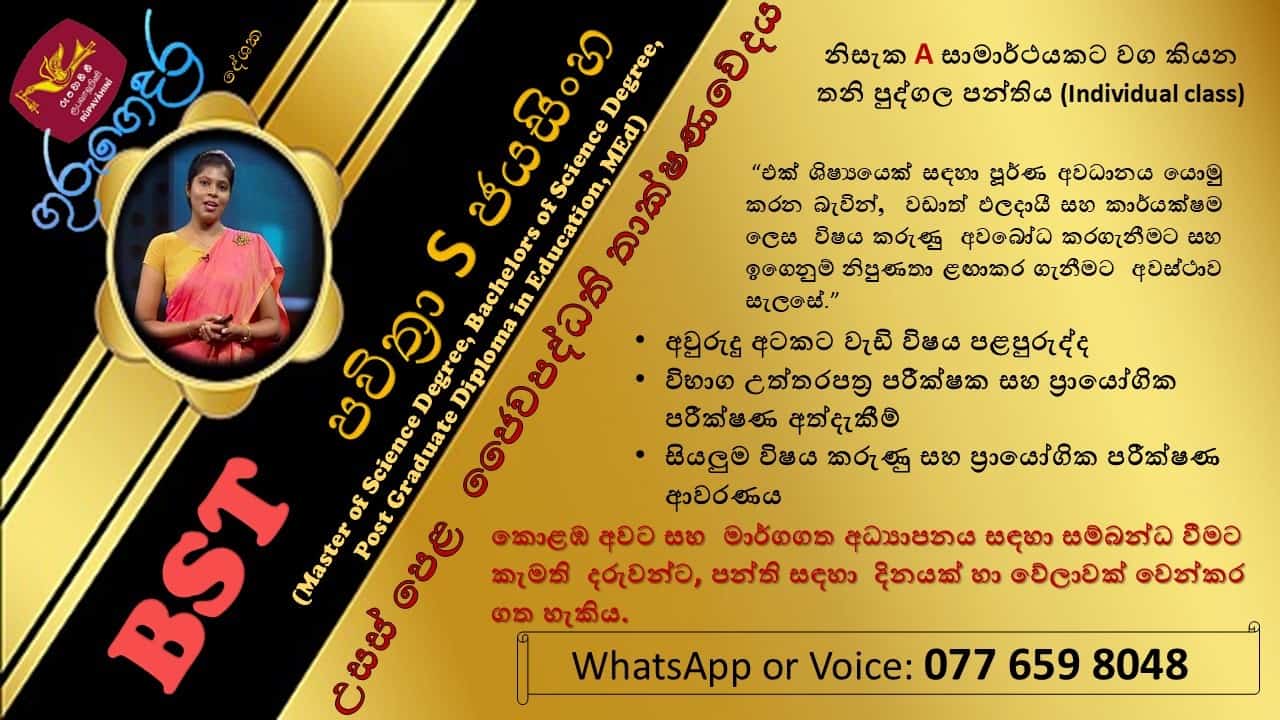 🔬 උසස් පෙළ ජෛව පද්ධති තාක්ෂණවේදය (BST) පංති සඳහා ආකර්ෂණීය දැන්වීමක් උසස් පෙළ ජෛව පද්ධති තාක්ෂණවේදය (BST) පංති …