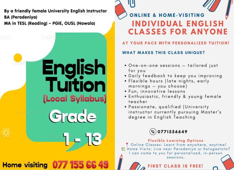 English classes conducted for anyone: Pre-grade kids, grade 1-13 students (Local syllabus), university students, working professionals, or for anyone …