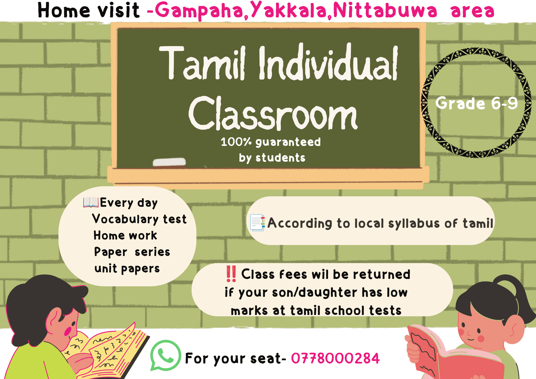 Home visiting Tamil classes‼️ Around – gampaha ,yakkala,nittabuwa area Grade 6 to 9 Speed of the class depends …