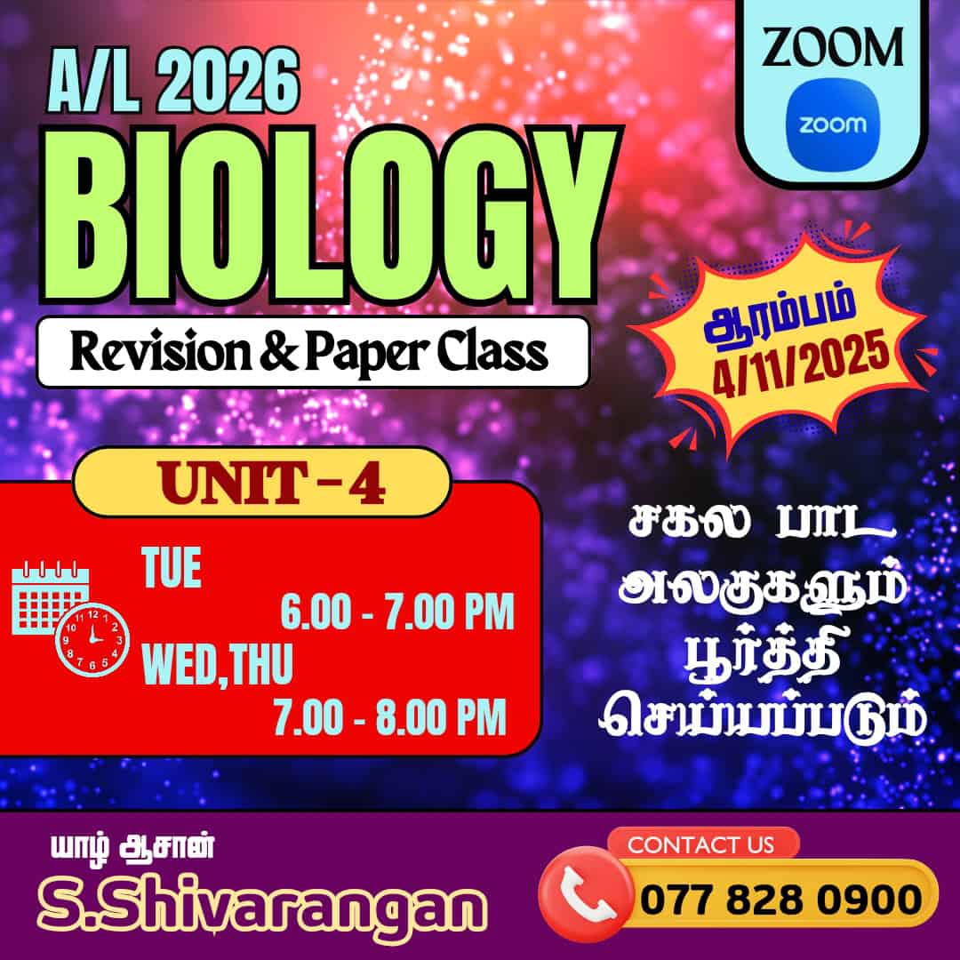 Leading and experienced biology teacher from jaffna doing online classes for group or individual,
