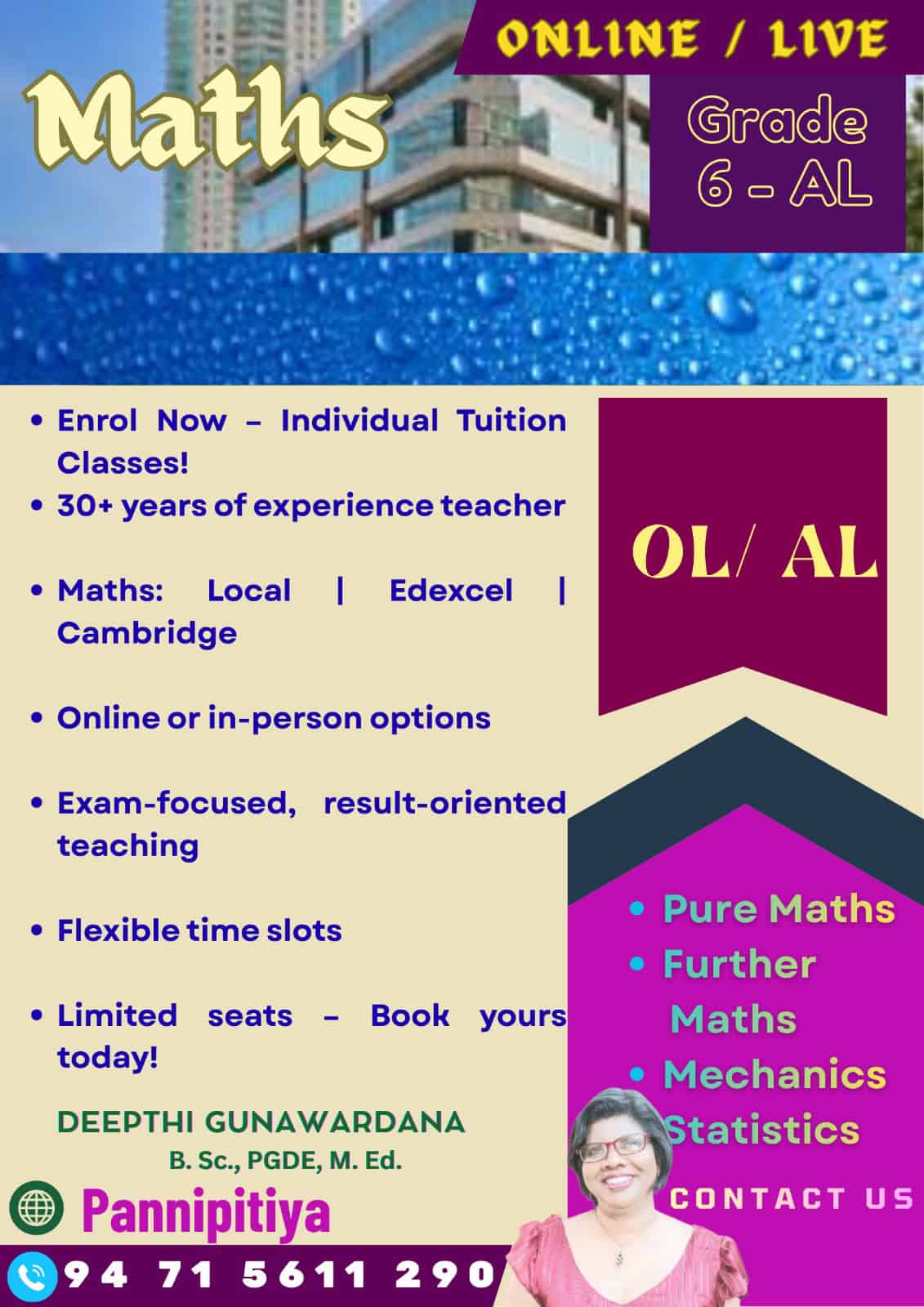 Teacher Qualification & Experience: 📘 Maths Tuition – Score Your Best! Experienced teacher & marking examiner Theory revision + focused weak-area support Past papers & marking scheme discussions Regular mock tests Proven results Small groups / individual classes Online or in-person Limited seats – Enroll now ---